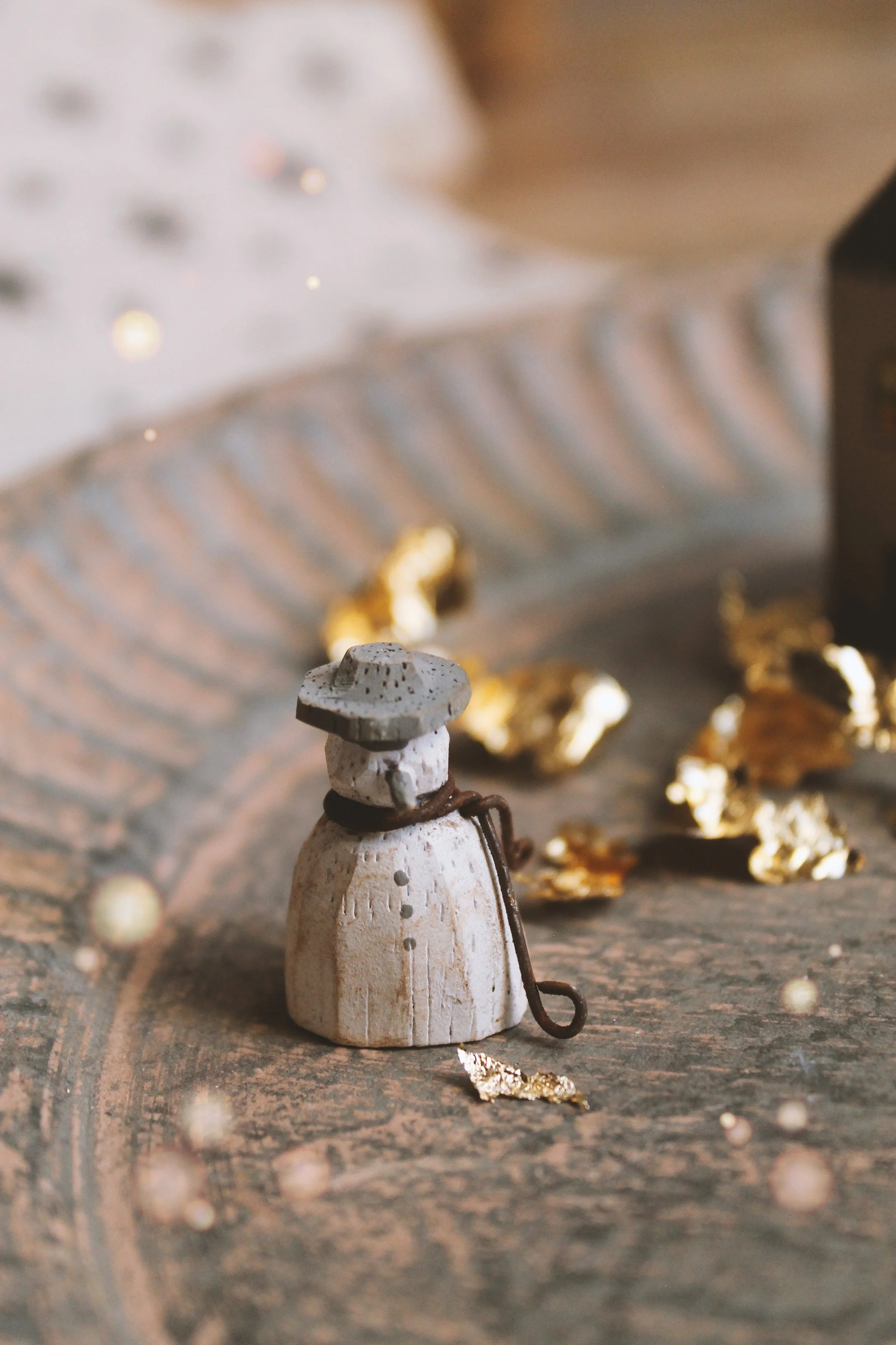 A tiny wooden snowman delicately crafted and painted by hand. In muted warm tones of grey and white and his scarf is a brown rustic wire. The perfect companion for our wooden houses and trees the teeny tiny details will capture the imagination of all the family. None edible but makes a great cake topper too, just remember to remove before tucking in.